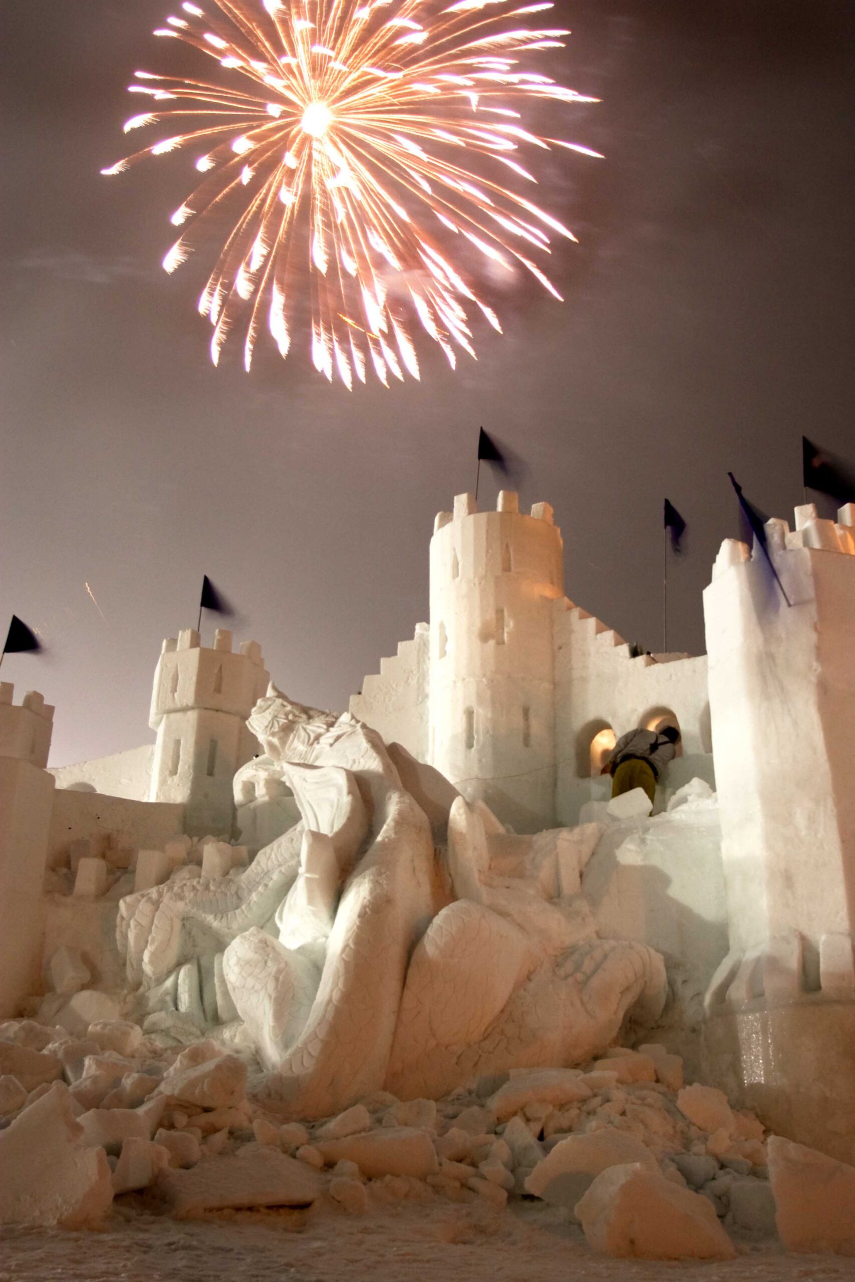 More than just a day on the slopes, the Winter Carnival transforms the ski area into a festive alpine village. Visitors can explore a towering snow castle, enjoy live music echoing across the snowfields, and watch a lively parade wind through the base area. As evening approaches, the celebration culminates in a spectacular fireworks display lighting up the mountain sky — a favorite moment for kids and adults.